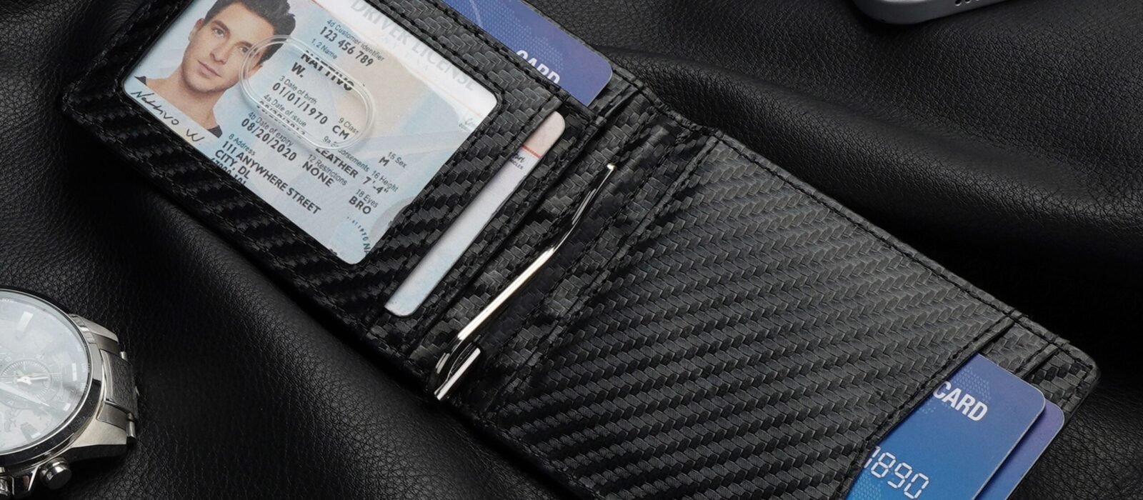 CARBON-FIBER LEATHER. RFID BLOCKING.
