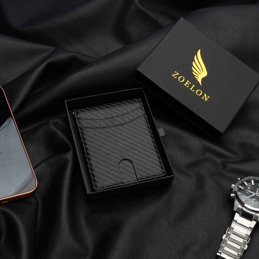 Crafted with premium carbon-fiber leather, the ZOELON RFID Wallet blends luxury design with advanced RFID protection, keeping your essentials secure in a slim, modern form.